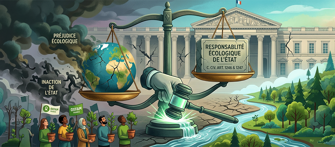 Par un jugement du 3 février 2021 (TA Paris, 3 févr. 2021, « Association OXFAM France et autres », req. n°190467, 190468, 190472, 190476), le Tribunal administratif de Paris a jugé que « l’Etat doit être regardé comme responsable, au sens des dispositions […] de l’article 1246 du Code civil, d’une partie du préjudice écologique » résultant du réchauffement climatique (cons. n°34).
